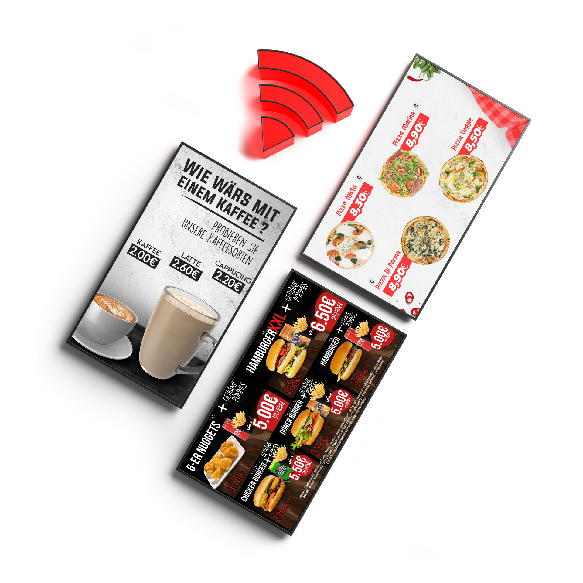 Unsere digitalen Menüboards sind modern, einzigartig und animiert - eine perfekte Kombination für Ihr Unternehmen, um Ihre Speisen und Getränke auf ansprechende Weise zu präsentieren. Mit unserem innovativen Design können Sie sicher sein, dass Ihre Kunden begeistert sein werden und Ihre Speisekarte auffällt. Probieren Sie es noch heute aus!
